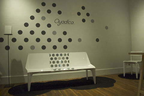 aiiimaでの展示では、アルミのシートからつくりだされたダイニングチェア「Cyclops」と、ベンチ「dots.」をご紹介いたします。