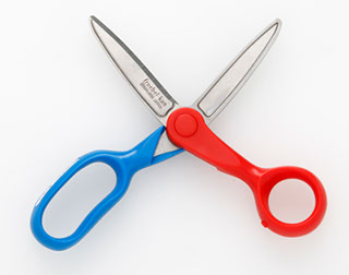 指導がしやすい色違いハンドルは、耐久性のあるABS樹脂成型。刃は切れ味がよく、糊が付きにくい形状にし、安全のため90度以上開かない仕様になっています。