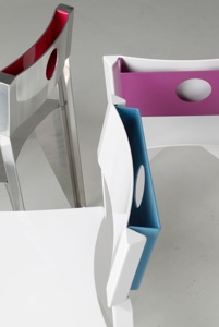 The backrest has a pocket with a hole (for hooking fingers when carrying), adding to the chair’s simplicity an interesting look as well as usefulness.