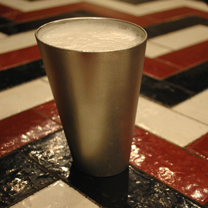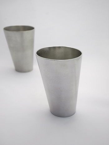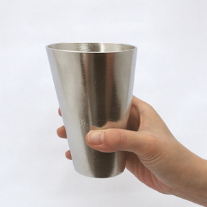This beer tumbler is made of 99% purity tin. As its shape is slightly off-balanced, the comfortable angle to hold and drink would depend on each individuals.