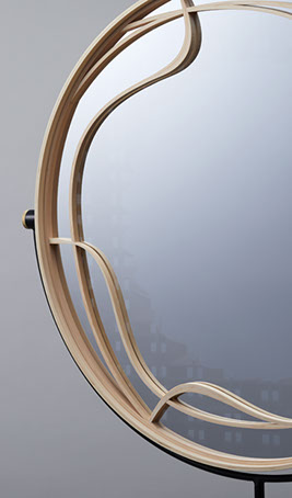 木素材×異素材、堅さ×柔らかさ、伝統技術×デザイン。さまざまな要素を掛け合わせ、組み合わせてつくり上げた”misto”ミラーシリーズ。