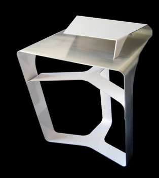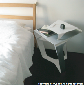 "PLANE" is a bedside table structured of a bended aluminum plate.
